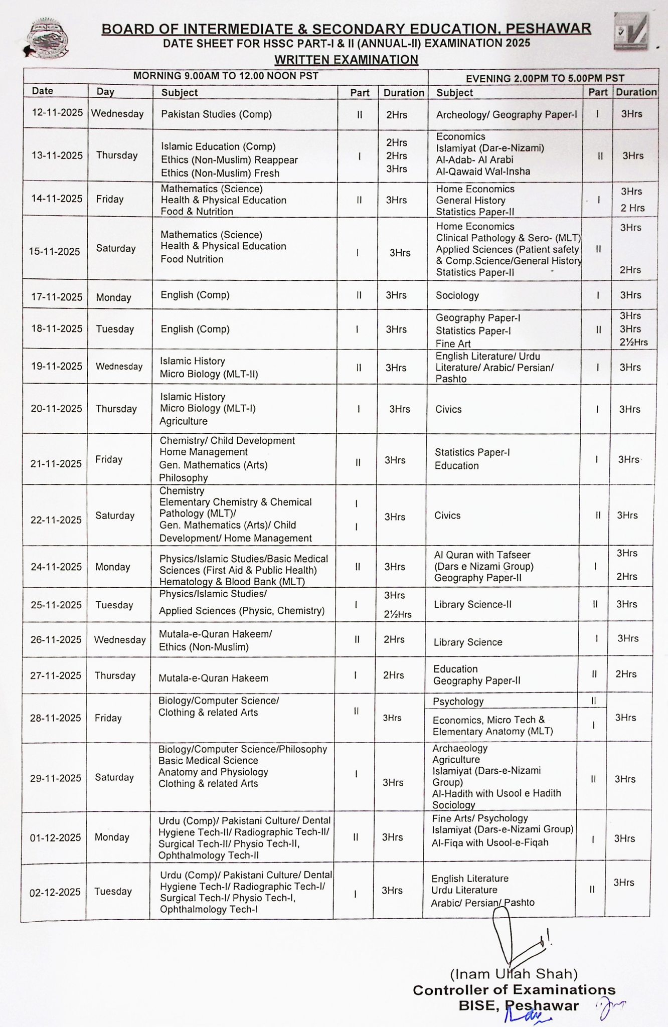 Note: The datesheet mentioned above is the official date sheet announced by the Peshawar Board.
